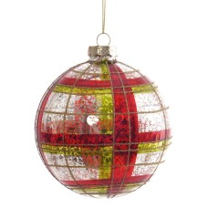 Елочное украшение "Шар" из стекла диаметром 10 см имеет сферическую форму с узором из клетчатого диз..