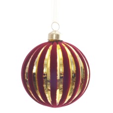 Елочное украшение "Шар" выполнено из нежного стекла. Яркие глянцевые красные полоски прекрасно сочет..