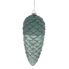 Стеклянная новогодняя игрушка в виде голубой шишки высотой 17 см, украшенная серебряным глиттером, д..