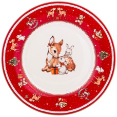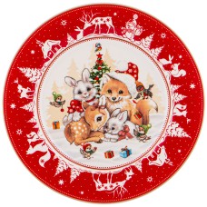 ТАРЕЛКА ЗАКУСОЧНАЯ LEFARD "ДЕД МОРОЗ И СНЕГУРОЧКА" 20,5 СМ КРАСНАЯ (КОР=18ШТ.)